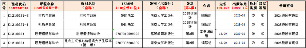 为规范教材建设与管理、做好教材编写、审核、选用等各项工作,提高教材建设水平,确保教材选用质量,依据教育部《职业院校教材管理办法》(教材【2019】3号)、教育部等5部门印发《关于教材工作责任追究的指导意见》和球友会在线《教材建设与管理实施细则》(南机电院【2020】50号)等文件精神,现将2025年秋季(2025-2026学年第一学期)教材选用的结果(见下表)进行公示。