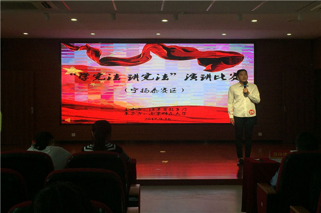 为全面贯彻党的十八大和十八届三中、四中、五中、六中全会精神,深入学习贯彻习近平总书记系列重要讲话精神和治国理政新理念新思想新战略,落实“七五”普法规划,9月16日,由省教育厅主办、南京师范大学承办的江苏省 “学宪法讲宪法”演讲比赛(宁扬泰片区)选拔赛在仙林校区举行。我院丁啸同学积极备赛,参加了本次比赛。