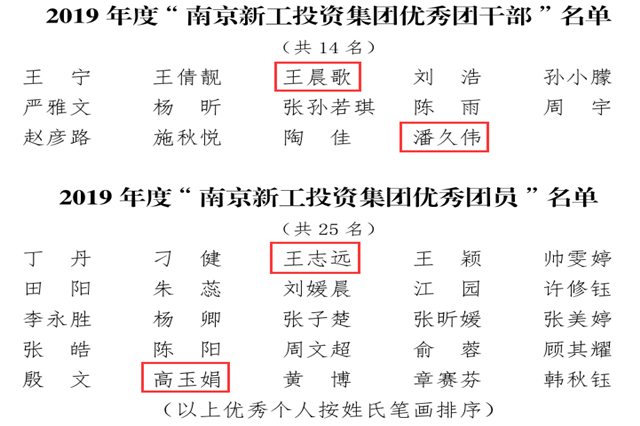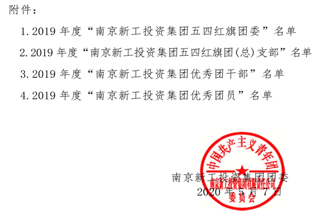 2019年以来,各级团组织、团干部和广大团员青年深入学习贯彻习近平新时代中国特色社会主义思想和党的十九大精神,树牢“四个意识”、坚定“四个自信”、坚决做到“两个维护”,奋发有为、真抓实干,推动共青团工作取得了新的成绩,涌现出一批先进集体和先进个人。为表彰先进,树立典型,引导和激励广大团员、团干部和各级团组织不断进取,再创佳绩,新工投资集团团委决定,授予球友会在线团委“2019年度南京新工投资集团五四红旗团委”称号;球友会在线机械工程系团总支“2019年度南京新工投资集团五四红旗团(总)支部”称号;授予潘久伟同志、王晨歌同志“2019年度南京新工投资集团优秀团干部”称号;授予信息工程系学生高玉娟、电子工程系学生王志远“2019年度南京新工投资集团优秀团员”称号。