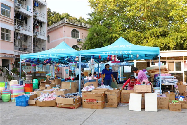 矿泉水一箱一箱地从事务大厅搬出去,是我们志愿者们一趟一趟来回奔波挥洒汗水的最好证明。学工处特意将平时运送快递的小车车贡献出来,帮助新生运送行李。