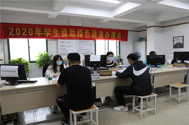 勤政楼大厅内的学生资助绿色通道办理点,暖心服务为你解决上学烦恼,用国家资助政策帮助有困难的新生无忧上学。