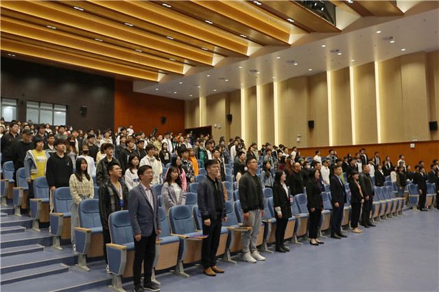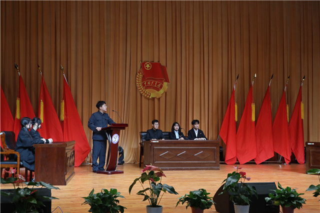 表彰大会在雄壮的中华人民共和国国歌歌声拉开帷幕。今年是中国共产党成立100周年,100年风雨兼程,100年奋斗不息,在中国共产党的坚强领导下,中华民族不仅实现了从站起来、富起来到强起来的伟大飞跃,更是在实践中不断丰富完善着中国特色社会主义理论体系,为中国共产党源源不断提供着思想动力和智慧源泉。全体团员在学生团委副书记孙佳怡的带领下重温了入团誓词。