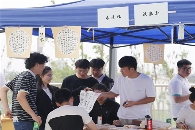 党委书记、院长周庆礼宣布社团巡礼节开幕。本届社团巡礼节在原有社团展示的基础上,延续虚拟货币的流通,打造虚拟货币促进社团与社团之间的互动。全师生可以在社团联合会设立的虚拟货币兑换处进行抽奖兑换,随后在不同的社团展位,进行互动,赚取或消费虚拟货币。此次摊位展示共划分了5个区域,主要分布在星梦馆前和篮球场中,文体类社团的聚集地命名为燃烧我的卡路里;文艺类社团聚集地命名为瑾蔓云裳绣芳华;娱乐类社团聚集地命名为悠悠绕指琴瑟鸣;科创类社团聚集地命名为创新、实践、分享、成长;思政类社团聚集地命名为学党史、强信念、跟党走。同学们拿着活动卡片参与每个区域的社团活动,会有社团联合会工作人员进行盖章,满5个区域之后,可以去兑奖处领取小礼品。此举,不仅激发了师生的社团活动参与率,而且促进了社团之前的交流,现场一派热火朝天的景象。