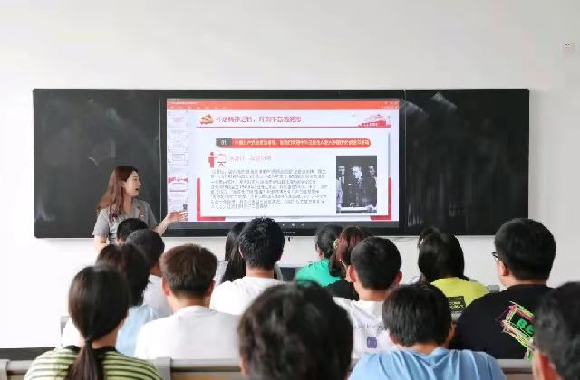 金老师以刘胡兰同志的故事举例,生的光荣,死的伟大是对刘胡兰同志一生最好的诠释,她也是唯一一个让三代主席为其题字的英雄。金老师说:我们都是根红苗正的90后,00后,虽不曾见证过那些历史的画面,但可利用新媒体技术,将一个个令人热泪盈眶的瞬间,一个个历史成就的转折点,剪辑拼凑到一起,重现党一路走来的光辉历程。随后,金老师给大家播放了一段视频,带领同学们回顾了党的光辉历程。十月革命的一声炮响,为中国送来了马克思列宁主义。同学们也在课堂上踊跃发言,展开了俄国十月革命对中国影响的激烈讨论。