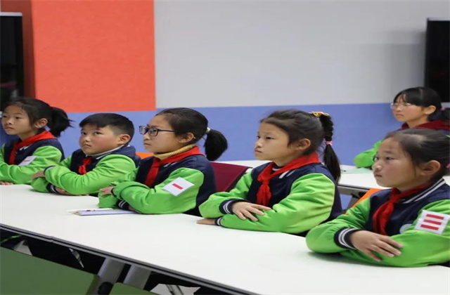 迎着冬日的暖阳,少先队员们首先来到了位于思学楼的智慧教室,团委金慧敏老师带领同学们上了一堂生动的团课,给少先队员们讲解了中国共产党的百年奋斗路,在授课过程中同学们积极回答问题,本次授课让少先队员坚定了“传承革命精神,争做时代好少年”的志向和信心。