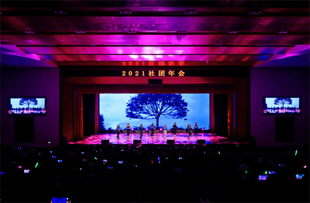 2021年12月22晚,一年一度的社团年会如期举行,每个社团都热情似火,积极展示出自己独特的魅力和风采,吸引了一大批同学前来观看,活动现场热闹非凡。团委书记唐钰峤、团委老师金慧敏同各社团社长一起参加了这属于社团人们的盛会。