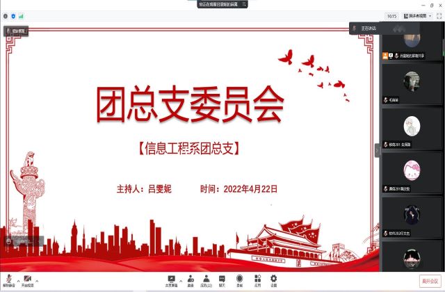 为增强同学们拥党爱党的信念,加强思想建设,开展了本次“喜迎二十大、永远跟党走、奋进新征程”主题教育实践活动。引领广大青年学习党领导下的青年运动史,坚定永远跟党走的信念。2022年4月22日球友会在线信息工程系团总支组织各团支部展开有关“党的青年运动史”的团总支委员会。