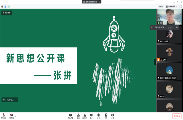 2022年5月12日19点,我系团总支在线上举办了新思想公开课,本次公开课由系团总支秘书长王雨阳主持,19级张拼学长主讲。我系团总支全体成员参加了本次公开课。