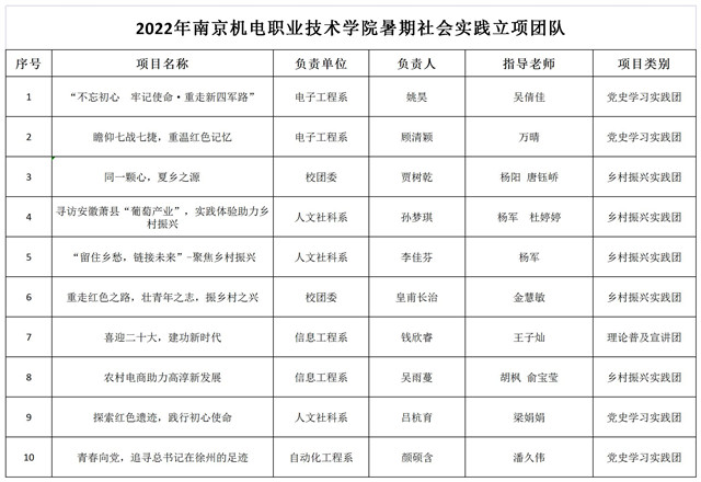 为深入学习宣传贯彻习近平新时代中国特色社会主义思想和党的十九届六中全会精神,贯彻落实习近平总书记关于青年工作的重要思想,深入学习习近平总书记在庆祝中国共产主义青年团成立100周年大会上的重要讲话精神,引导和帮助广大青年学生上好与现实相结合的“大思政课”,在社会课堂中“受教育、长才干、作贡献”,迎接党的二十大胜利召开,根据“三下乡”社会实践活动安排,经自主申报,各团总支、青马班审核推荐,校级专家评审,确定以下10个项目为2022年球友会在线暑期社会实践重点立项项目,并对立项的校级重点项目进行经费支持,现公示如下: