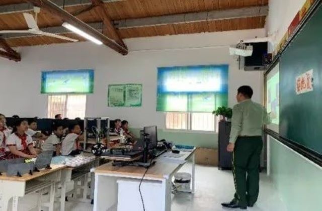 ppt展示的过程中,我们看到了乡村学生们渴求知识的眼睛, 看到学生们对党历故事与工业机器人知识非常感兴趣,这些都让我们更加坚定了要把乡村科普支教与创客宣传教育坚持走下去的决心。
