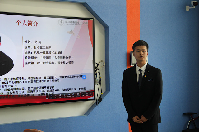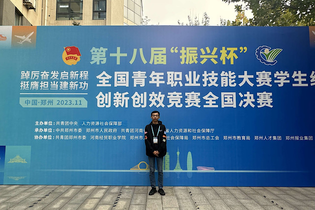 赵乾,共青团员,球友会在线机电一体化技术214班学生,曾担任自动化工程系学生会主席。在校期间分别获得“国家奖学金”和“国家励志奖学金”各1次,曾获得2023年度江苏省“三好学生”、第十八届“挑战杯”江苏省二等奖、江苏省职业院校创新创业大赛三等奖2次、第八届江苏省“互联网+”大学生创新创业大赛三等奖等荣誉。作为一名学生骨干,积极参加志愿服务及公益活动,累计志愿服务时长500小时,曾获得徐州市“核酸检测优秀志愿者”、学校“寒暑假社会实践优秀个人”各1次。