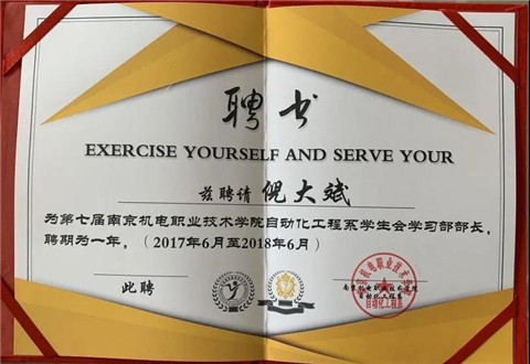 担任学习部部长的经历锻炼了我的意志,让我迅速成长。大学就是一个小社会,为人处世,与人交往这些技能是书本所不能够学到的,这就要求我与不同的人打交道。所以,我非常建议大家在不影响学业的情况下,积极主动地参加一些学生组织和社团活动。在参加学生活动的过程中,你会交到一些志同道合的朋友,可以锻炼自己的组织能力和创新思维,这个在以后的人生中将受益无穷。