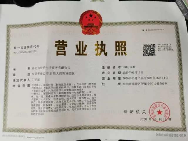 2019年8月—至今 泰州市宥怡电子商务有限公司 董事长;
