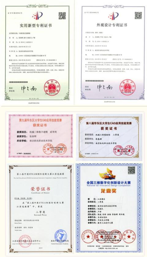 大学期间,我积极参加各项社团活动,培养自己的动手能力、提高实际操作技术。并很荣幸担任CAD/CAM社团社长,同时也鼓励身边的同学也一起加入、一起成长。在老师的指导和自己的努力下,先后获得了第十二届“高教杯”全国大学生先进成图技术与产品信息建模创新大赛机械类机械类建模二等奖、中美青年创客大赛(南京赛区选拔赛)优秀团队奖、第二届中英STEAM国际创新大赛江苏选拔赛二等奖、首届全国大学生创新体验竞赛“创新价值”三等奖等二十多项奖项。在比赛中不断超越前进,超越自我,同时也认识了许多志同道合的小伙伴。