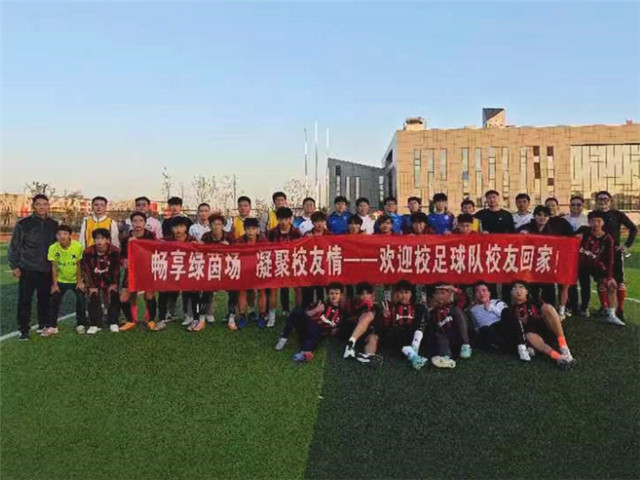 为凝聚校友力量,加强校友与学校之间的联系,重温校园美好时光。 2023年11月19日下午,学校在校生足球队与历届校友足球队举行了一场足球友谊赛。参加本次友谊赛的校友足球队是由我校10、14、18级从无锡、苏州等相约返校20多位足球爱好者校友组成。学校学工处、校友办和体育部积极筹备了本次活动。学工处处长张宝中、处长助理殷凯、就业(创业)指导中心沈小军和体育部王维鹏老师参加了本次交流活动。