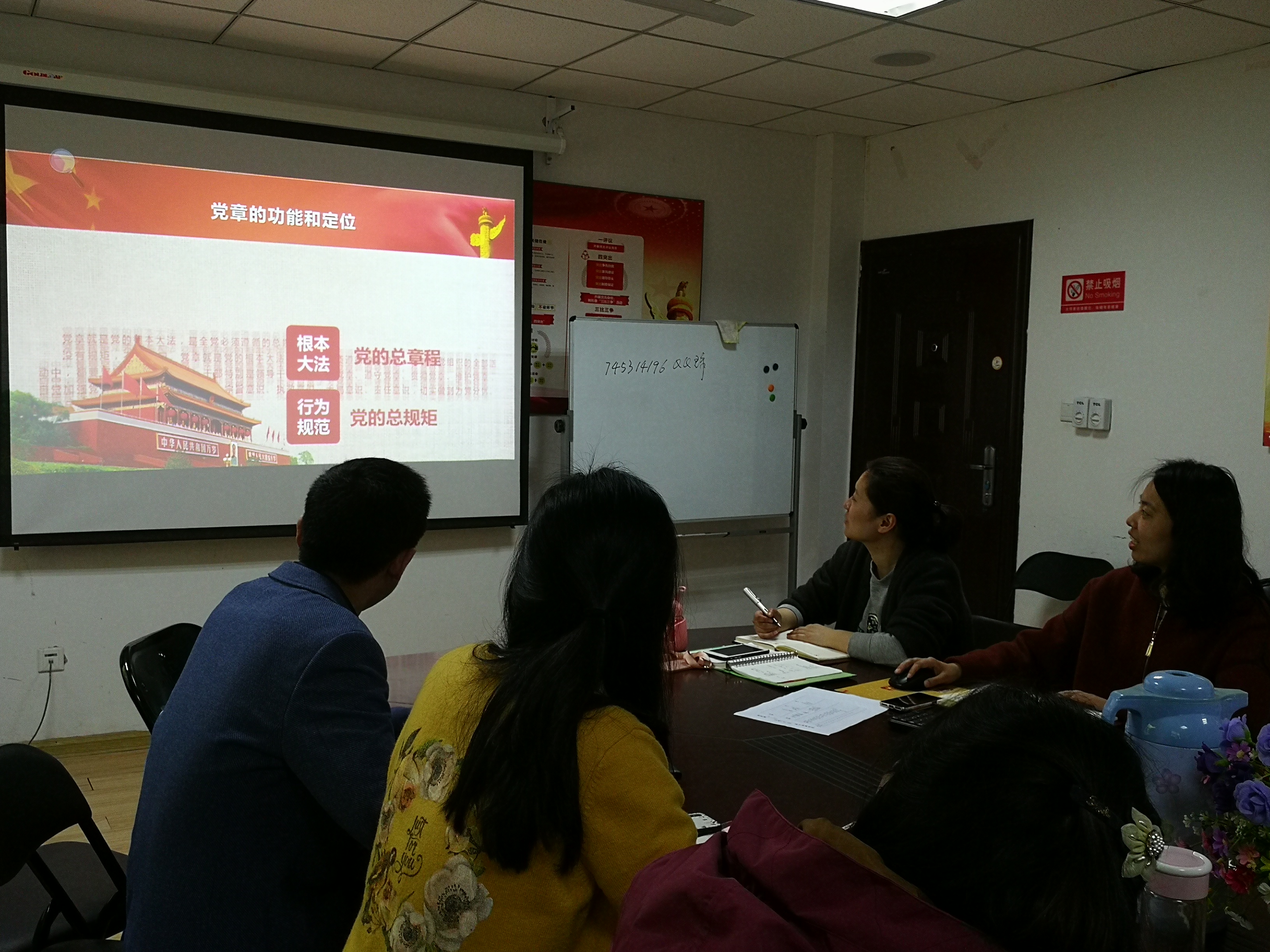 深入学习贯彻党的十九大精神,4月13日下午,信息工程系党支部在学正楼309会议室开展了“学习党的十九大对党章十大重要修改”为主题的两学一做专题党课学习,党课由系部副主任、党支部纪律委员刘娴同志主讲,全系党员参加学习。
