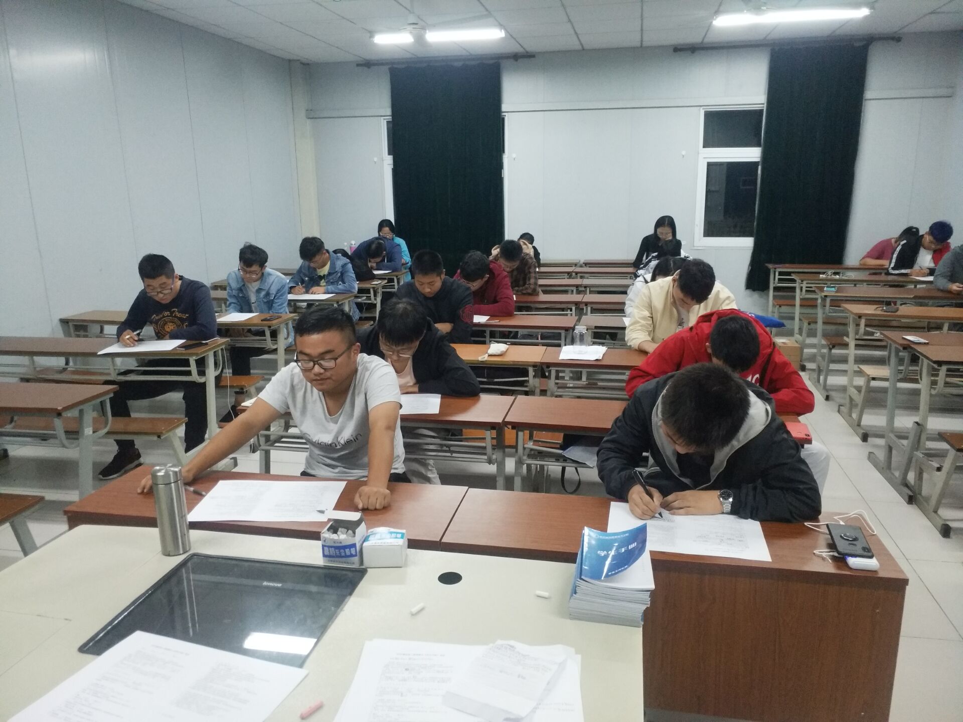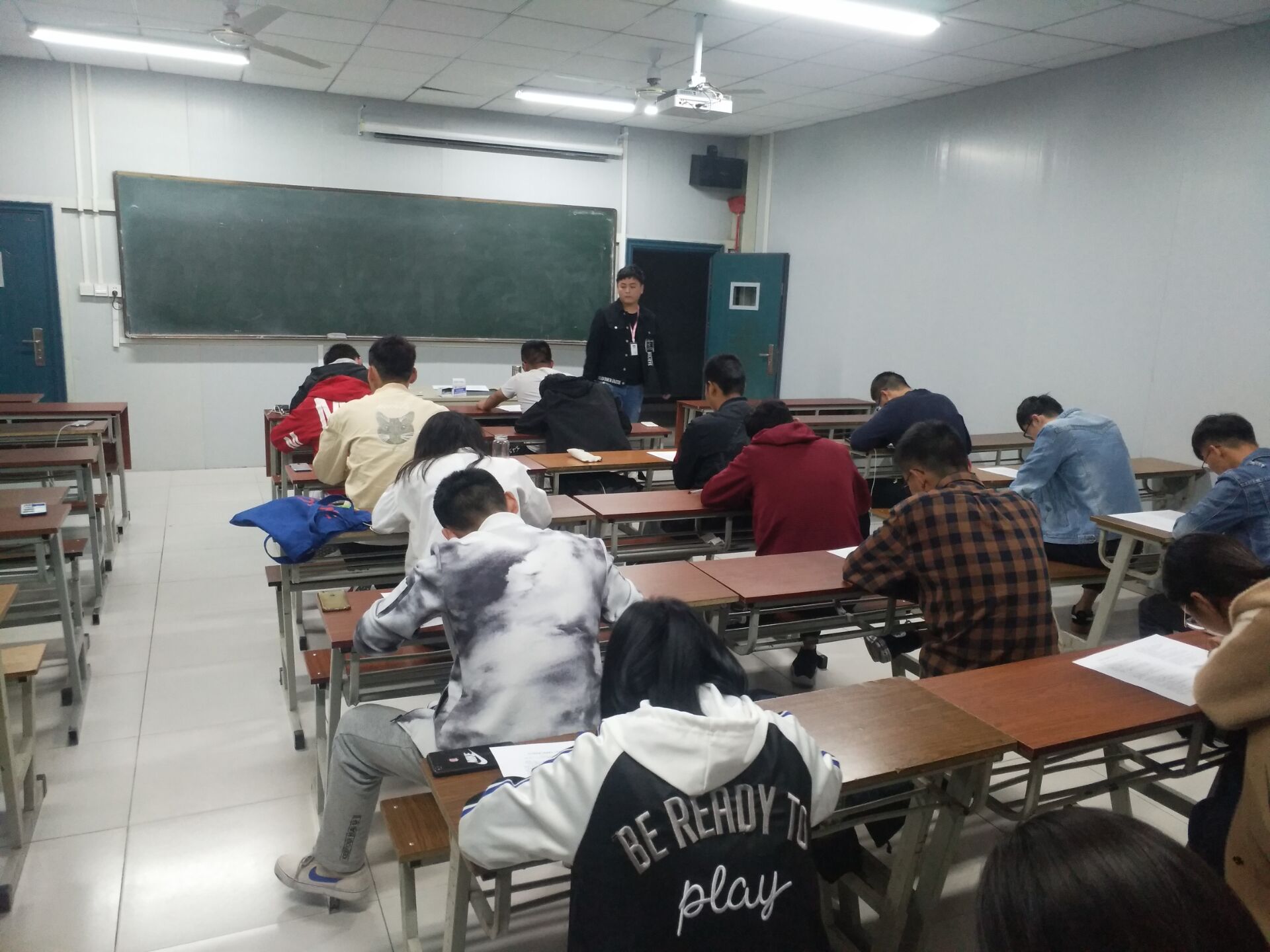 考试现场秩序井然,同学们认真作答,仔细思考,同时信息系学生会的工作人员都秉持严肃端正负责任的态度,维持考场的纪律,严肃考风考纪,让每位应试学生的能力得到充分发挥,他们或苦思冥想,或奋笔疾书,力争考出优异成绩。学生们对主观题的回答,仁者见仁,智者见智,展现了我们南京机电学子的多元化思维与创造性思想。