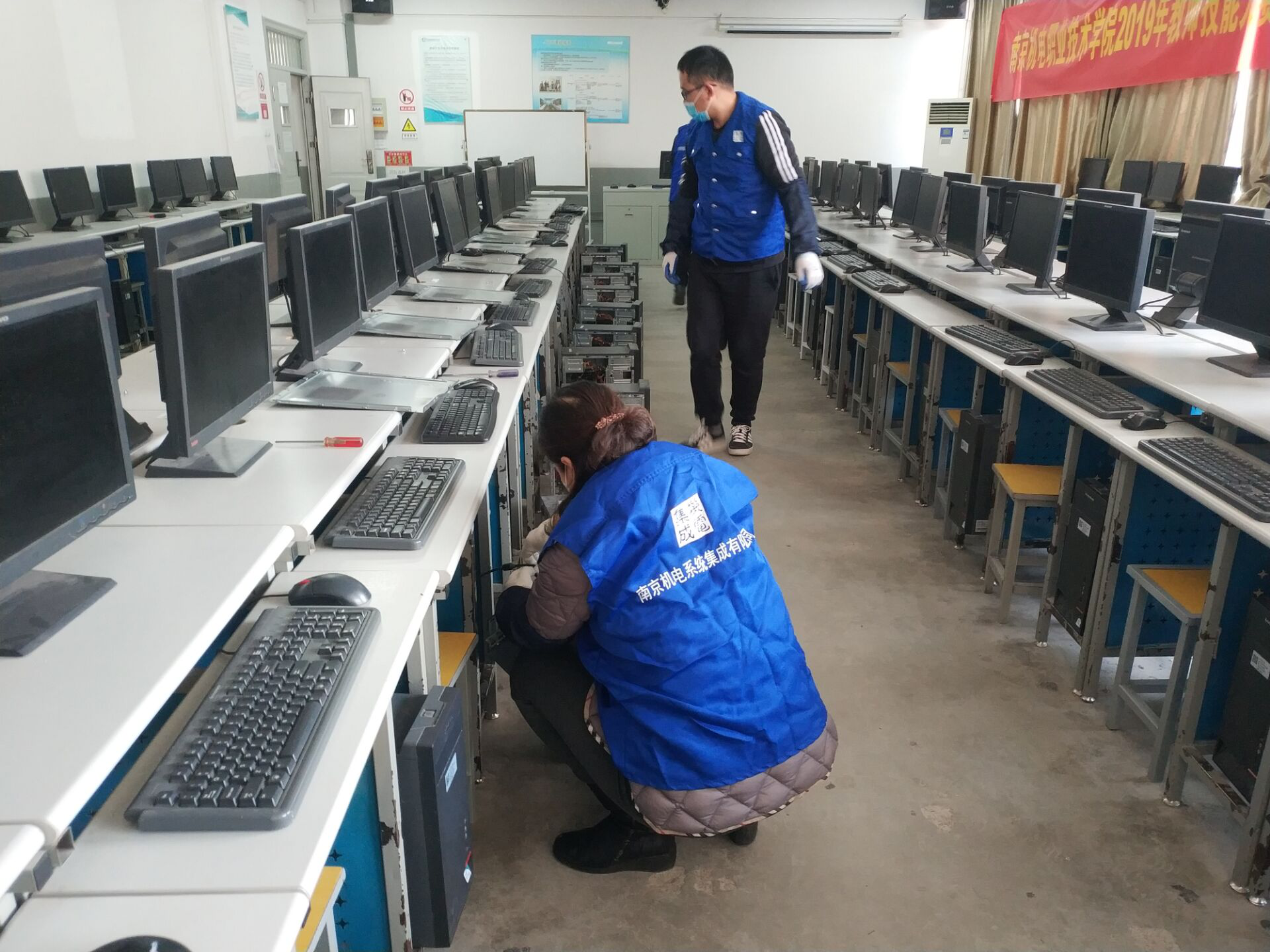 通过参与人员的通力配合,经过两天高效的工作,完成了我系实训中心所辖300余台计算机设备的除尘维护任务,做好了新学期开学前的设备维护工作。