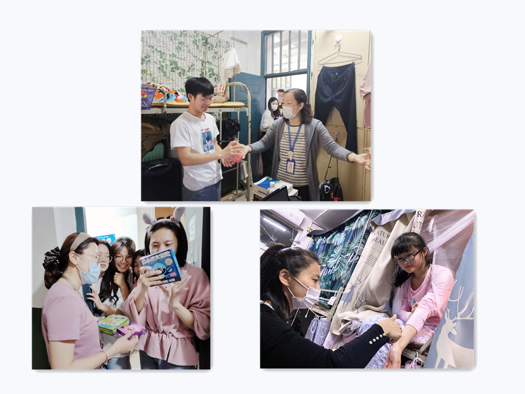 慰问现场,王主任叮嘱大家不仅要照顾好学生,也要照顾好自己,你们每一个人的背后都是一个个家庭。胡书记也强调,保护好自身的安全,才能更好地服务学生。