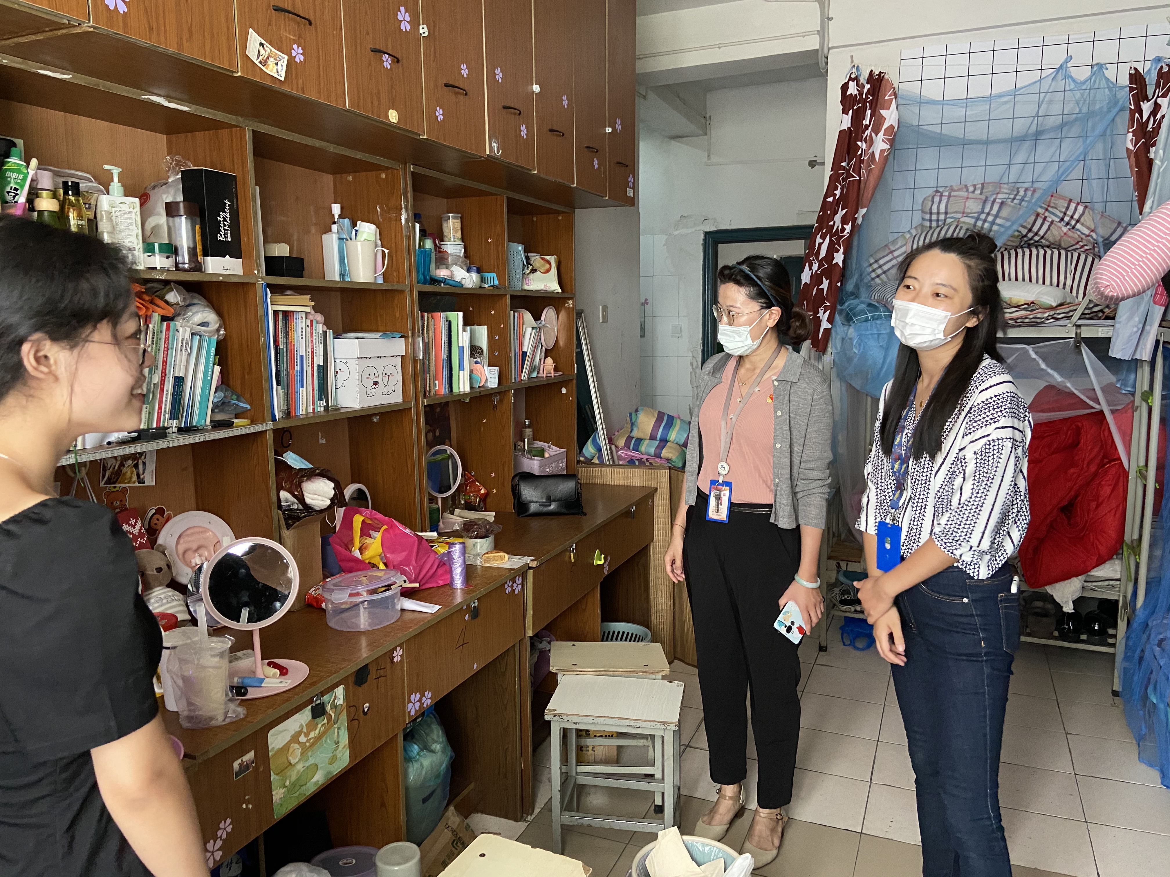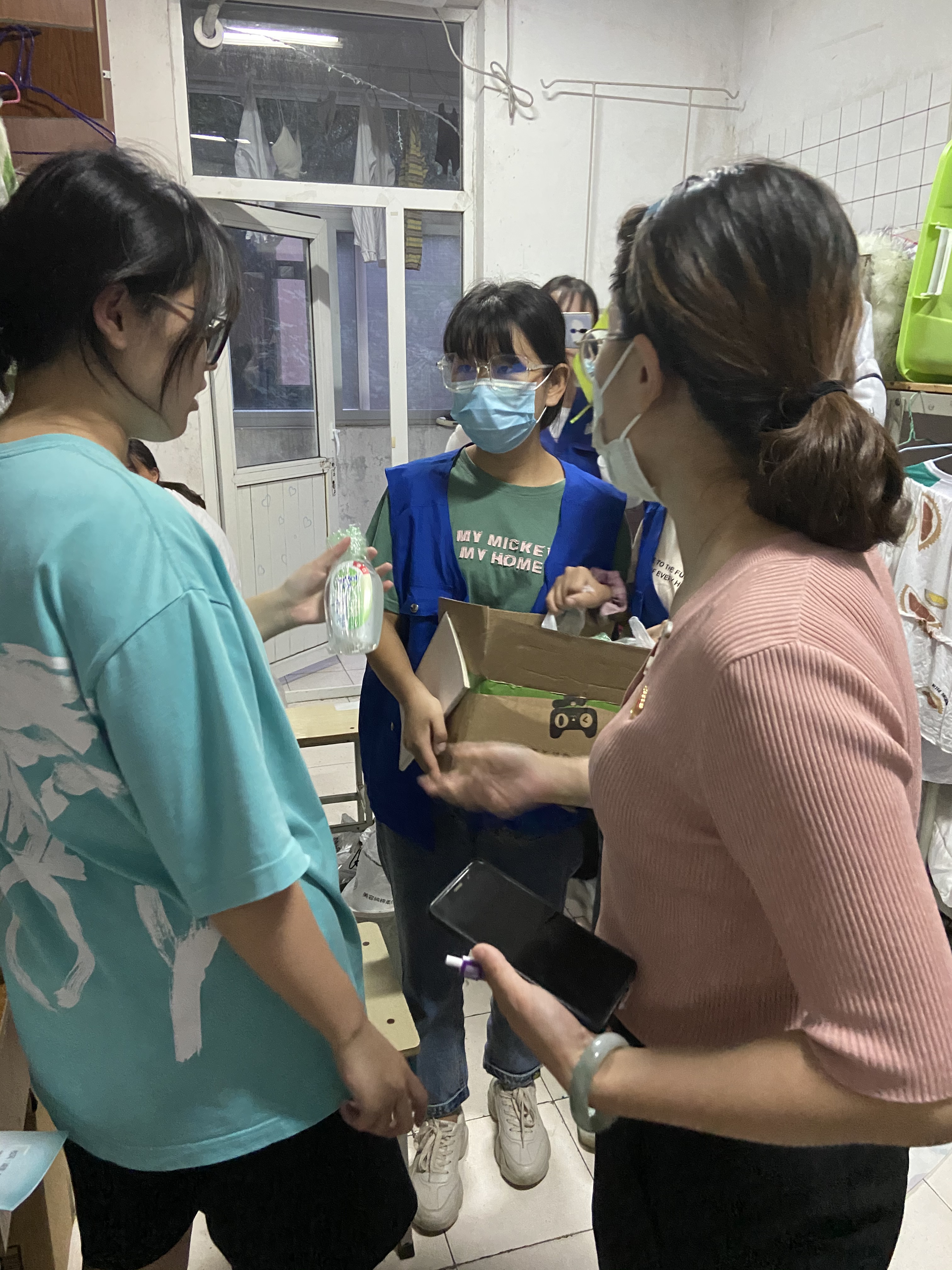 根据安全进入校园流程,学生在进入校园前跟随志愿者进入返校生安全检验通道。首先需要进行体温检测,体温正常才能在志愿者的指引下进行下一环节。第二环节,学生要核验苏康码是否为绿色,最后在志愿者的指导下打开今日校园进行扫码签到,确认无误后进入校园。进入校园后,同学们也不用担心行李过多带来的不便,会有穿着志愿者马甲的志愿者迎接,帮助返校学生们搬运行李。我系志愿者们将行李从校门口搬运至宿舍门口,一次次地往返于校门口和宿舍。在烈日炎炎下,汗流浃背,晶莹的汗水如同雨水般滴落,将衣服湿透,但那飒爽的身姿给学校增加了一抹亮丽的风景线。系部的老师们也进入宿舍,了解大家返校情况,并给每间宿舍送上免洗洗手液,为学生返校生活表示一份系部的心意。