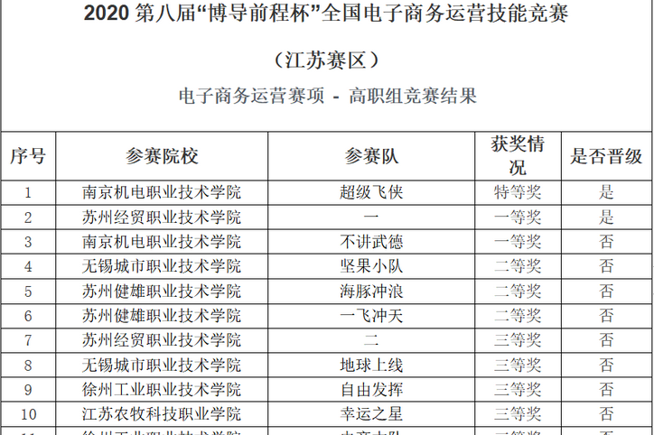 12月7日上午,2020年第八届“博导前程杯”全国电子商务运营技能竞赛-江苏赛区在线上举行。我校由12名2019级移动商务专业同学组成的4支团队与来自全省高职组参赛队伍同台竞技,最终荣获特等奖1项,一等奖3项。