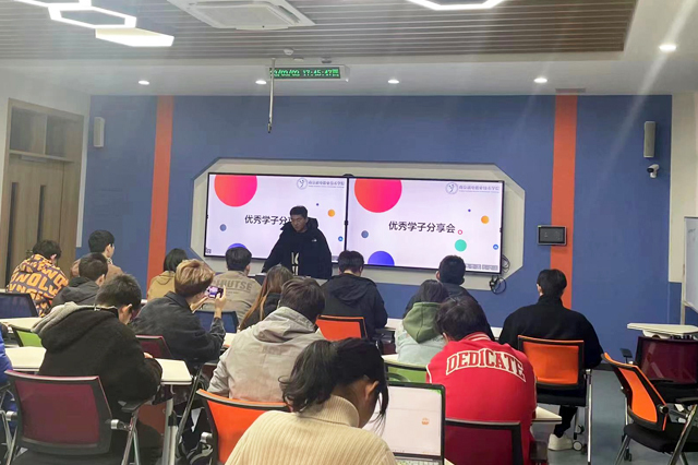 交流会上,两位学长从自身的经历出发,畅谈了学习心得、备考方法、如何突破瓶颈期、如何调整学习心态等问题。学生会秘书长张恒瑞提醒同学们要重视基础,吃透教材;要勇于跳出舒适圈,积极调整学习心态。陈政洋同学则告诉大家学习是打开人生大门的一把钥匙,并鼓励同学们要明确学习目标、平时打好基础、做好职业规划。两位优秀学长的精彩分享,赢得了同学们的阵阵掌声。会后,李想对此次分享会作总结。学长们勉励学弟、学妹们要汲取榜样力量,砥砺奋进前行,能够将此次分享会的宝贵经验与自己的实际情况对接,以更加饱满的热情投入到学习生活中去。