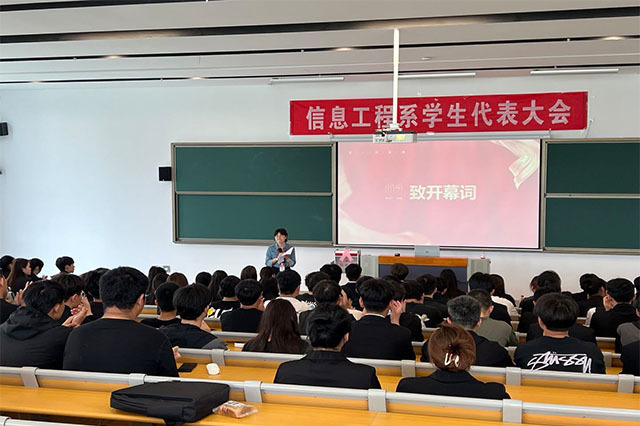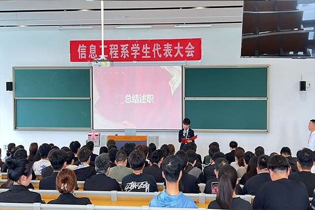 2023年4月18日下午1点,球友会在线信息工程系第四届学生代表大会在善学楼103顺利召开。信息工程系党支部书记胡枫、党支部组织委员兼团总支书记俞宝莹、党支部青年委员兼学生会指导老师郝麒、学工处老师顾窗林、全体辅导员老师及118名学生代表出席了本次大会。大会由学生会指导老师郝麒主持。