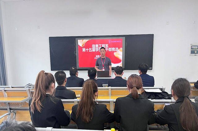 为推进信息工程系学生会建设,发挥学生骨干带头作用,促进各部门经验交流,为学生会注入新活力。2023年6月5日,球友会在线信息工程系第十五届学生会换届选举大会在博学楼208教室举行,本次会议由李想同学主持。信息工程系党支部书记胡枫、学生会指导老师郝麒及全体学生会成员参与本次大会。