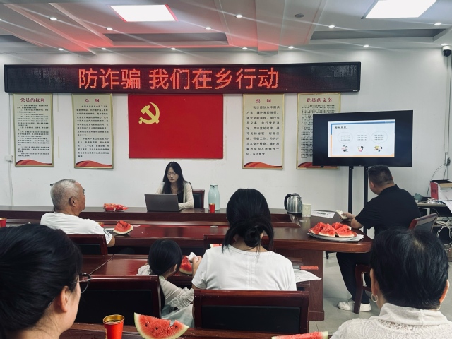 当天恰逢立秋,社会实践小分队的同学们特意准备了清甜的西瓜,与村民们围坐在一起啃秋”。大家一边品尝着清爽的西瓜,一边听着同学们讲解反诈知识,现场氛围温馨而热烈。此外,同学们还贴心地为社区的老人和孩子们准备了凉茶,在炎炎夏日里送上了一份清凉与关怀。