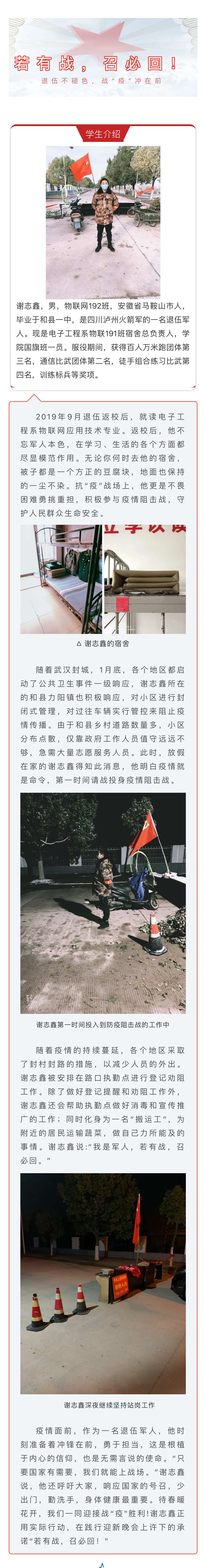 【学生特辑】电子工程系|谢志鑫:退伍不褪色,战“疫”冲在前