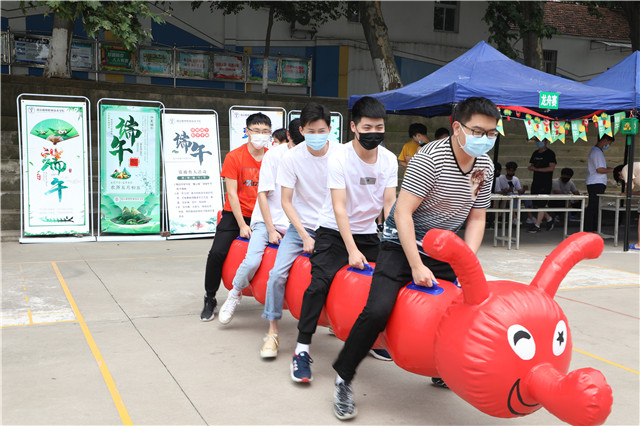 此外,学工处还准备了“传统文化知识问答”和“陆地龙舟赛”的活动,同学们可自由选择自己喜爱的项目参加。“传统文化知识问答”以答题的形式与同学们进行互动,答对的同学可免费获得手工艺品。同学们热情高涨、跃跃欲试,在答题互动的之中进一步增强了对端午节传统文化的了解。