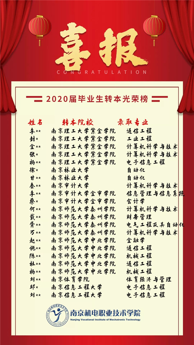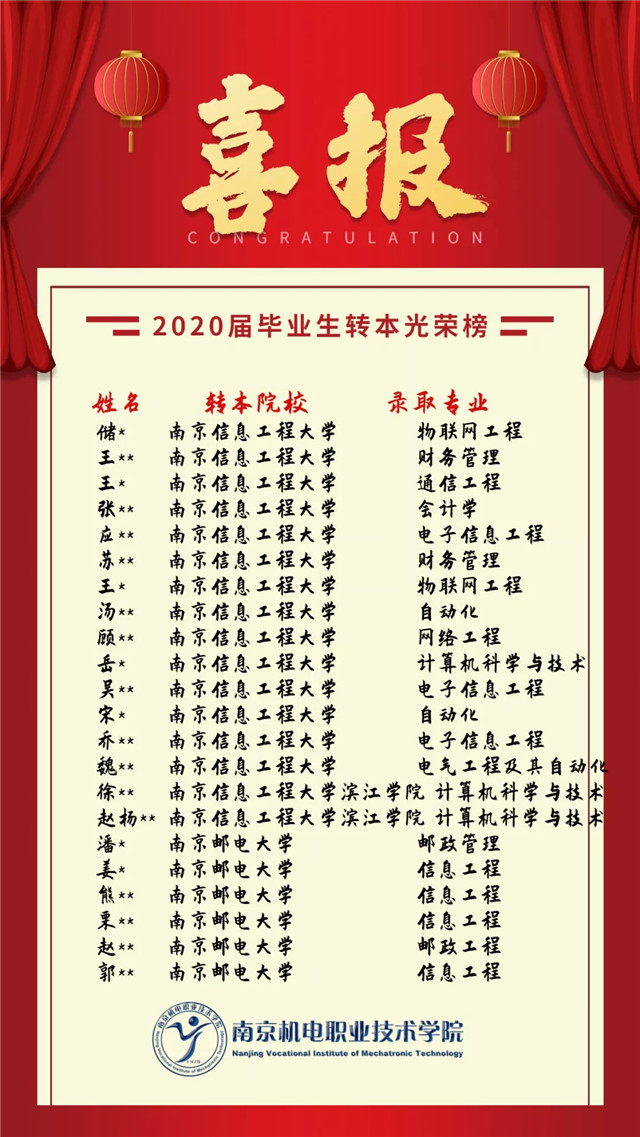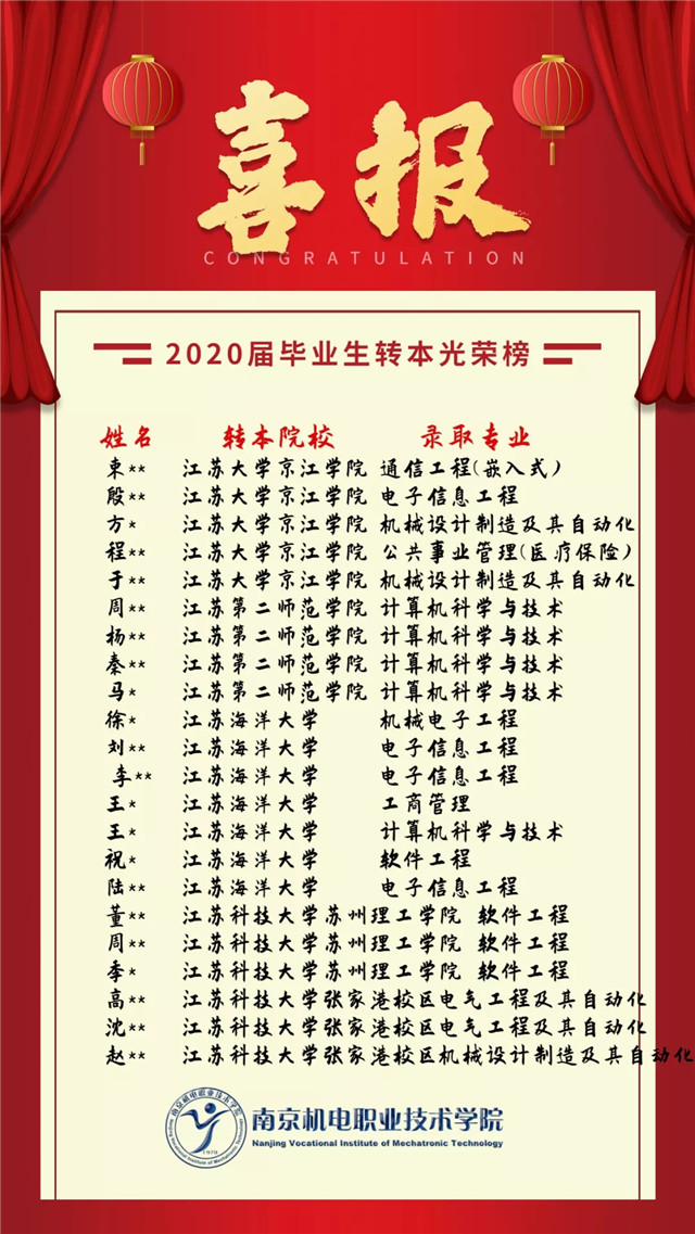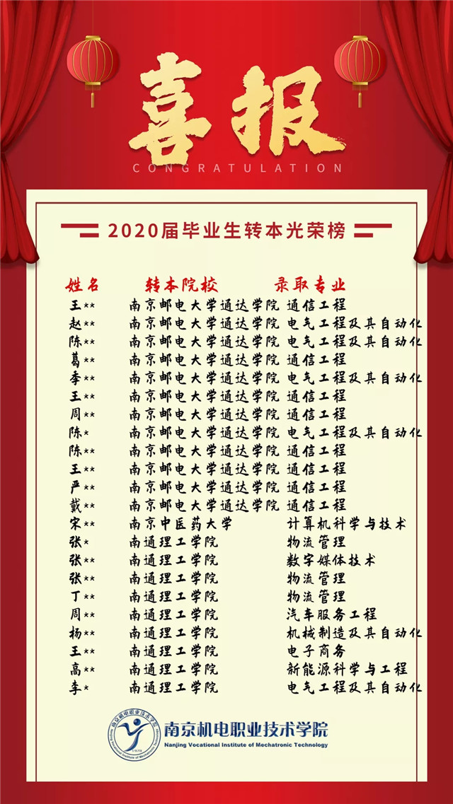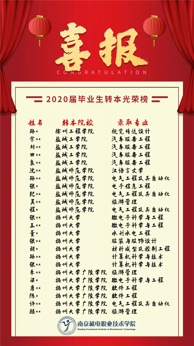 【喜报】我院2020届毕业生转本名单