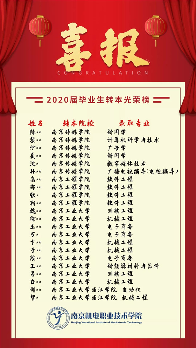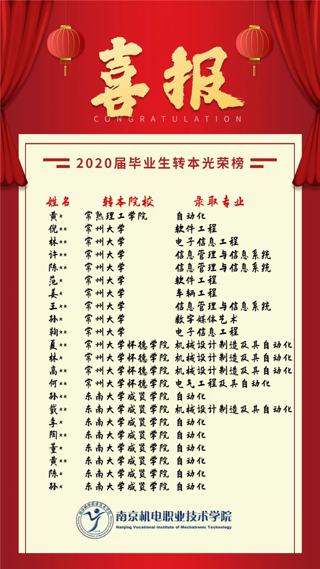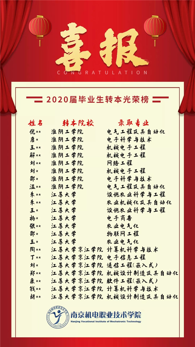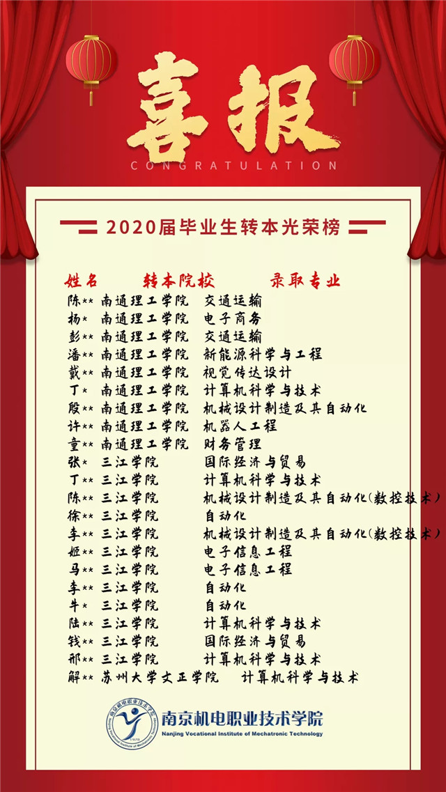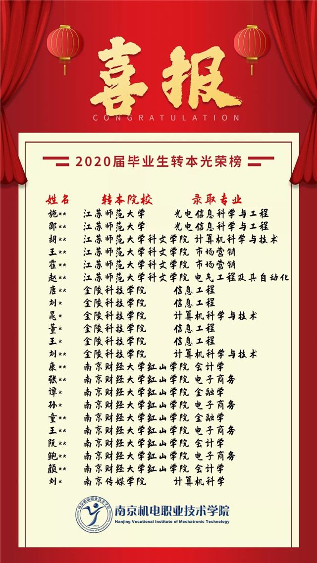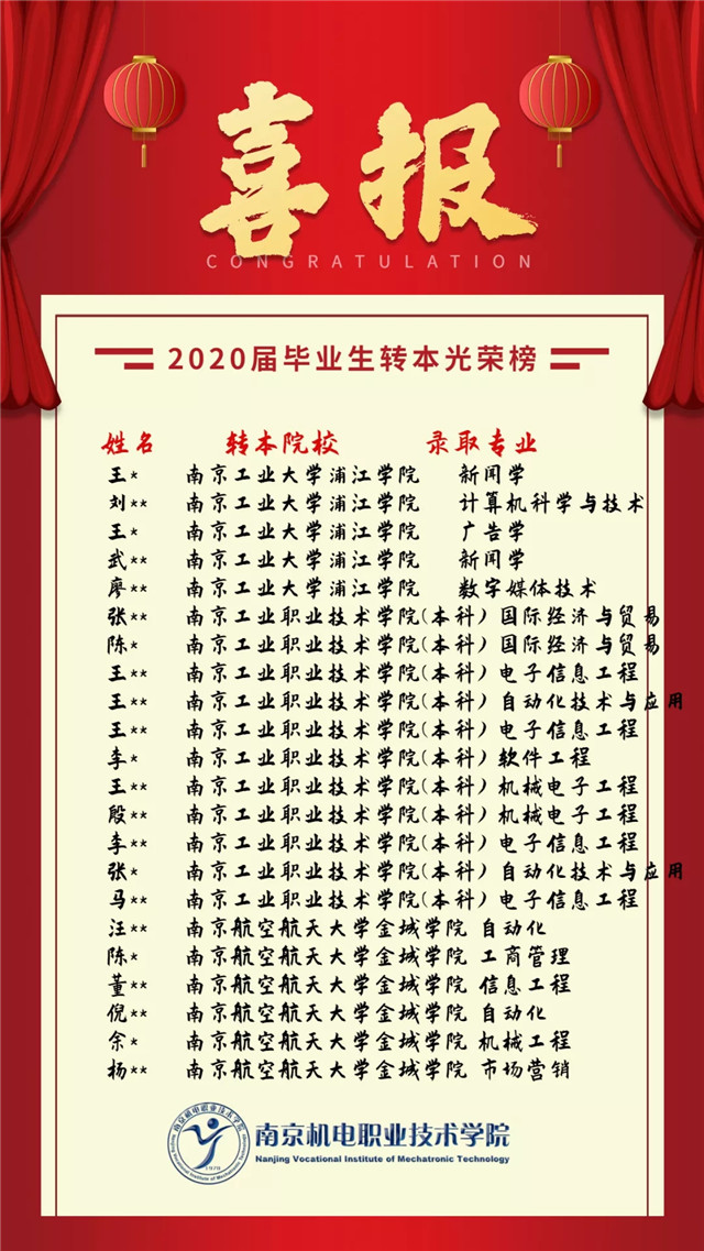 【喜报】我院2020届毕业生转本名单