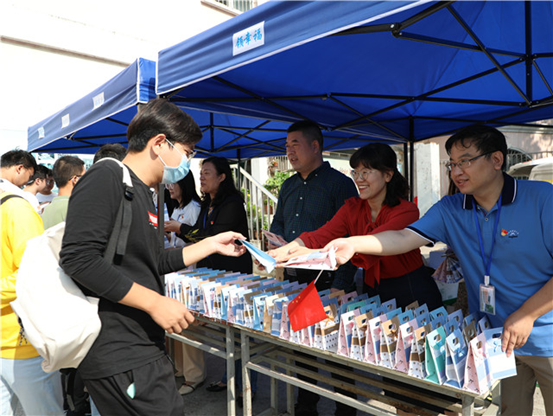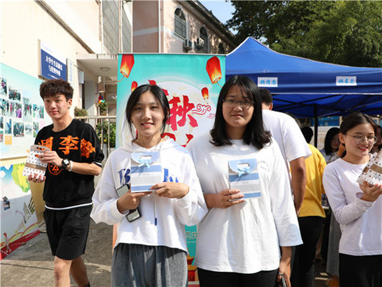 中秋节是中国人一直喻为最有人情味、最具诗情画意的传统节日,学院领导和各系书记在宿舍广场向同学们发月饼、送祝福。传递在手间的不仅仅是月饼,更是一份沉甸甸的爱,学生们吃在嘴里、甜在舌尖、暖上心头。值此双节时刻,学院老师和学生们齐聚一堂,共同分享团聚的喜悦,这份喜悦,驱走了同学们对家乡的想念,代替了对亲人的牵挂。