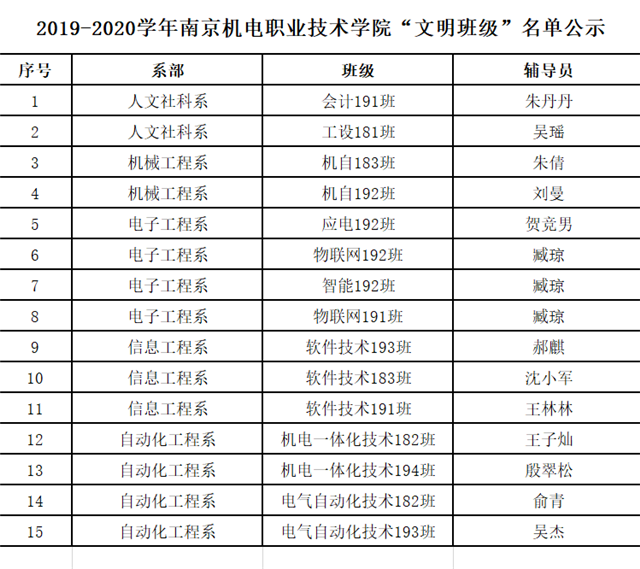 根据《球友会在线2019-2020学年三好学生、优秀学生干部、文明班级评选通知》规定,经学生本人申请、班级评议,系部审核推荐,学工处核准,学校审批,在公平、公正、公开的基础上,拟评选出以下个人和班级为2019-2020学年球友会在线“三好学生”、“优秀学生干部”、“文明班级”,现将名单公示如下。