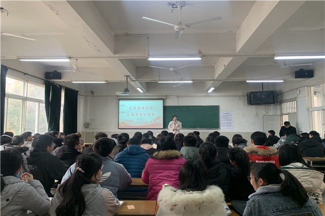 在座的每一位学生都是一面旗帜,每一位学生都是学习的榜样,希望每一位学生成为文明行为的监督员和排头兵,成为学院活动的宣传员和参与者,将校园打造成为书香校园。将勤学、善思、明理、笃行的学风带到每一位同学的身边,实现“四新”机电中的新面貌,为学院入住高淳高等职业教育创新创业园贡献力量。