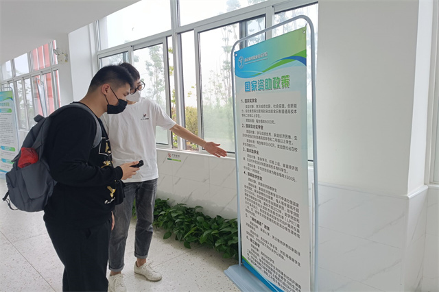在新生入学报到期间,专门设立了“缓交学费”“政策咨询”“残疾生学费减免”“校内资助”“生源地助学贷款”等专项服务台,让家庭经济困难新生通过“绿色通道”快速、顺利入学。在新生报到前,学校已提前为398名生源地助学贷款新生办理学费缓交确认手续,实现生源地贷款学生“报到即入学”。