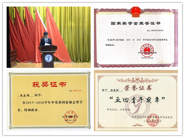 在学习上,我一刻都没有松懈,时刻牢记学习的重要性,保持着求知的热情。课堂上,尊重书本、尊重知识;在课后,通过图书馆资源、网络平台不断巩固知识点。秉着这样的学习态度,我的理论成绩与综合素质考评均排名第一,先后荣获国家奖学金、国家励志奖学金、学院“三好学生”、“五四青年奖章”等荣誉称号。