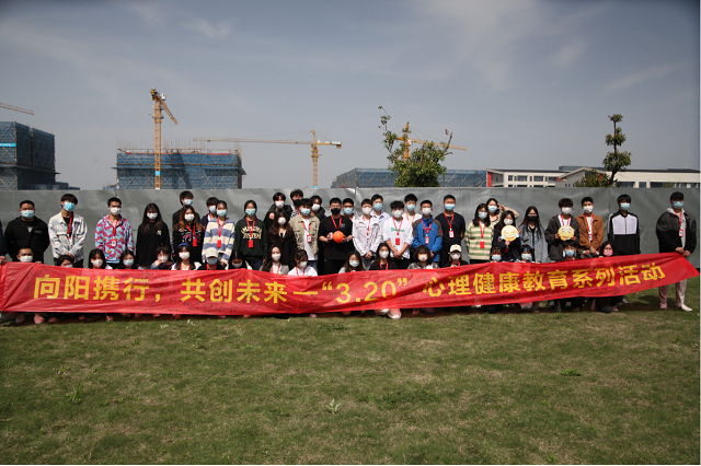 为推动心理健康教育与生命教育、理想信念教育相结合,引导大学生树立“珍爱生命、心向阳光、砥砺前行、共创未来”的理念,激发同学向上向善、面向未来的奋斗力量,与时代共舞、与同伴协行,以积极向上、理性平和的良好心态迎接党的二十大的胜利召开。2022年3月29日中午12:30球友会在线学工处大学生健康成长中心于食堂小广场举办心理健康校园行活动。此次活动以“向阳携行,共创未来”为主题,吸引了广大同学的积极参与。