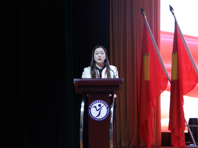 党委委员姜振宇为本次学生代表大会致开幕词。她对于一年来学生会的工作成效给予充分肯定,各级学生会组织紧紧围绕学校中心工作,在新冠肺炎疫情防控期间,维护校园安全稳定和遵守疫情防控纪律发挥榜样引领作用;全体学生干部引领同学们树立正确的“三观”,成为践行社会主义核心价值观引领者;开展篮球赛、拔河比赛、校园十佳歌手等文体活动,进一步丰富校园文化生活;带领全体同学积极参加职业生涯规划大赛,激发同学们生涯规划意识,为提升高质量就业打下坚实基础;积极参加团委组织的各类志愿服务活动和社会实践,为学校的高质量发展凝聚了力量,为实现“有爱有趣有情怀”的办学愿景作出了积极贡献。同时,她向全校各级学生会组织、广大学生干部提出了三点希望和要求:一是要提高政治站位,将青年学生紧紧团结凝聚在党的周围;二是要坚持服务同学,切实发挥学生会组织的桥梁与纽带作用;三是要深化组织改革,落实从严治会,培育清新阳光的组织文化。