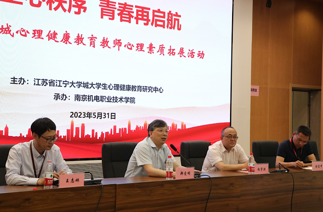 我校党委委员、副院长赵学洪出席开幕式并致辞。赵学洪对参加心理素质拓展活动的老师们表示热烈的欢迎,对江苏省大学生心理健康教育与研究中心多年来关心、支持、指导我校心理健康教育工作表示衷心感谢。他提出我校一直高度重视心理健康教育工作,坚持育心与育德相统一,持续为学生的成长和发展保驾护航。