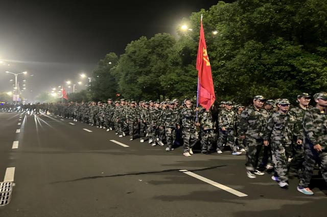 一路上,军训团以四路纵队有序前进,军训学员们步伐整齐、精神饱满、意气风发。队伍在行进时,各营齐唱军歌高喊口号,气势如虹,斗志昂扬。