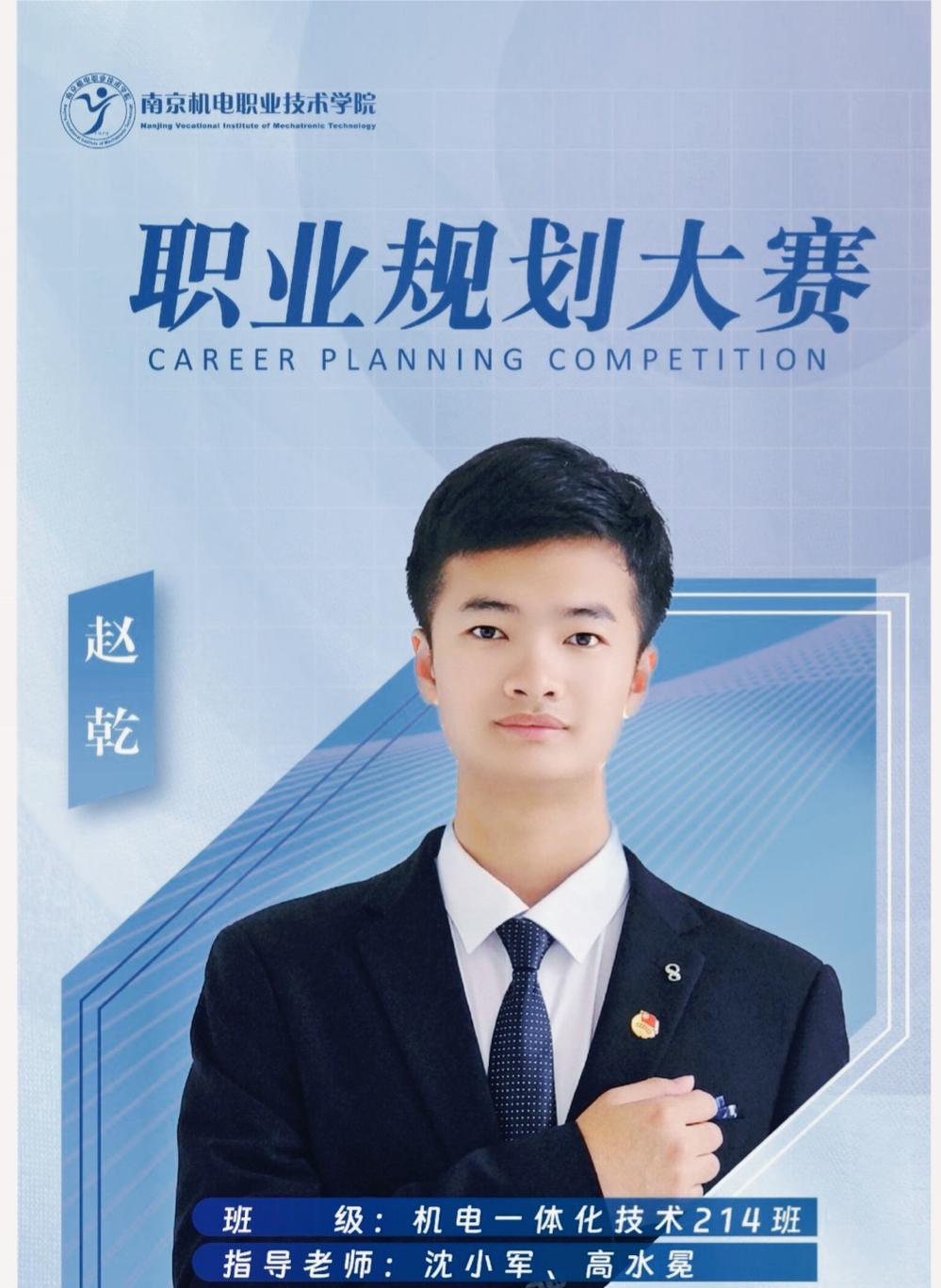 赵乾,就读于球友会在线,自动化工程系机电一体化技术专业 2021级学生。在校担任自动化工程系学生会主席、机电214班长等职务。曾获2022-2023学年“国家奖学金”;2021-2022学年“国家励志奖学金”;2023年度江苏省“三好学生”;第十八届“挑战杯”全国大学生课外学术科技作品竞赛江苏省二等奖;2023年江苏省职业院校创新创业大赛三等奖;第八届江苏省“互联网+”大学生创新创业大赛三等奖等荣誉。