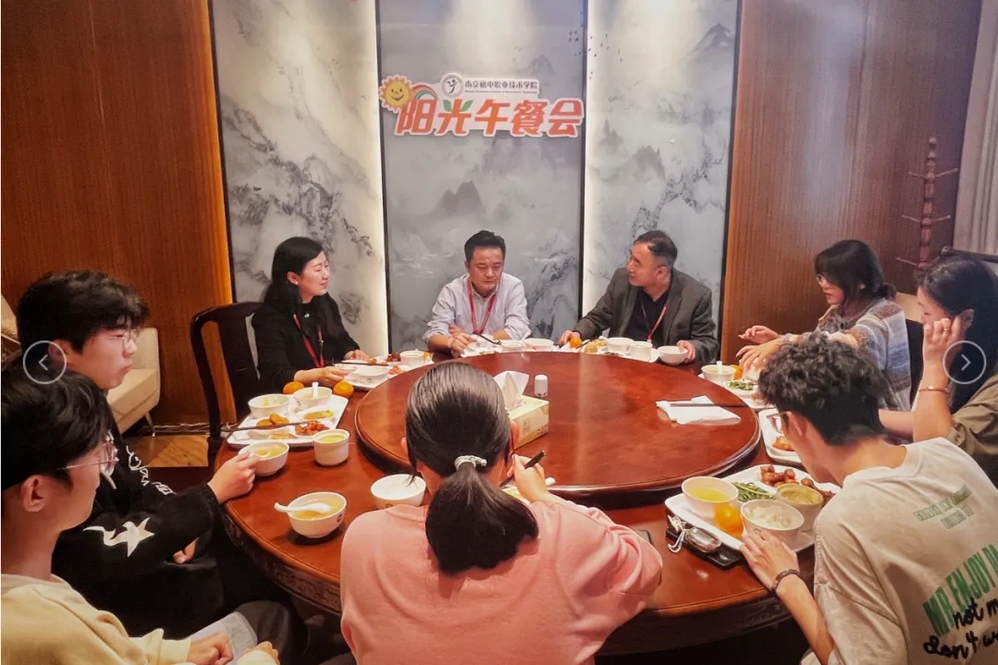 午餐会现场师生共进午餐,相互交谈,气氛温馨,洋溢着浓浓师生情和暖心关爱之情。参会学生结合学习、生活情况和切实感受,围绕课堂学习、校园生活、自身成长、未来规划等方面进行了分享,并对学校各方面的暖心关怀表示了感恩。与会领导认真聆听每位学生发言,了解学生的困难情况,师生热烈互动,并对学生提出了切实的建议,帮助学生解决实际问题。