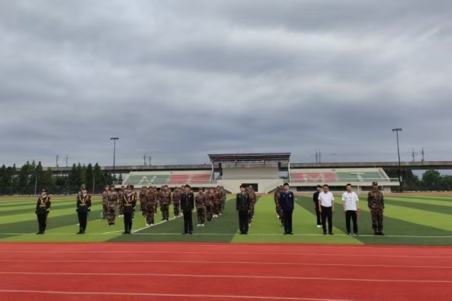 庄严肃穆启新篇,仪式感中显担当。仪式在协会成员整齐划一的入场中开启,随着《中华人民共和国国歌》的激昂旋律响起,全体人员肃立致敬,鲜艳的五星红旗冉冉升起。随后,全体队员进行队列展示—— 标准的军姿、整齐的步伐、刚劲的转体,每一个动作都彰显着国防教育协会平日里严格训练的成果,展现出“纪律严明、作风优良”的精神风貌。