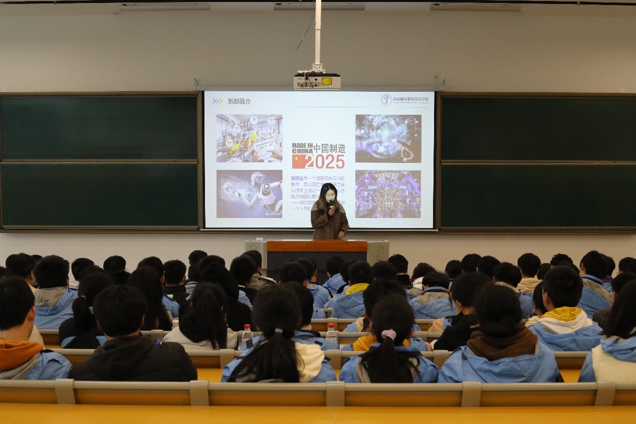 在善学楼101阶梯教室,我院机械工程系专业教师韦星屿从系部概况、专业建设、教学师资、课程设置、学生就业和升学等方面给师生做了详细的介绍。通过此次研学活动,临江中学师生对我校专业建设有了更为清晰的了解,拓宽了学生对专业发展的认识,更加清晰自己未来专业方向,同学们专心致志地聆听,积极踊跃地进行互动,现场气氛热烈。