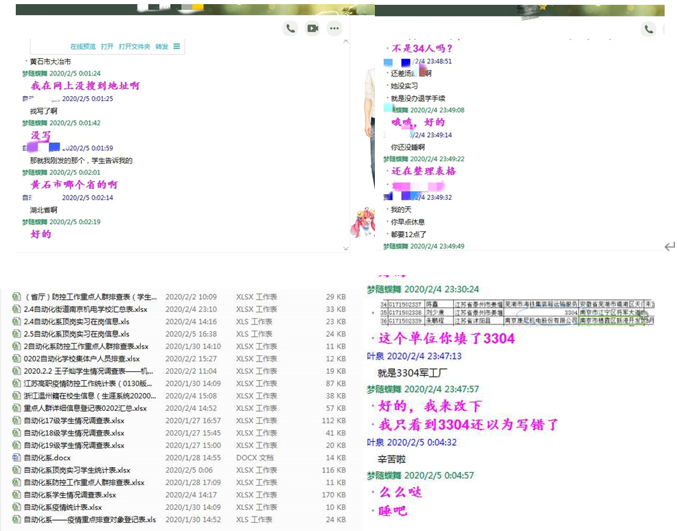 庚子春节假期,新型冠状病毒感染的肺炎疫情牵动着14多亿人心,这是一场没有硝烟的防疫战斗!作为一名高校辅导员,从学校部署排查工作以来,我也想要通过自己的努力,为这场战“疫”做些什么,不仅仅为了社会的平安和谐,也为了学生们能够健健康康的早日重返校园。虽然是远程对学生进行关心排查,但我丝毫没有放松。