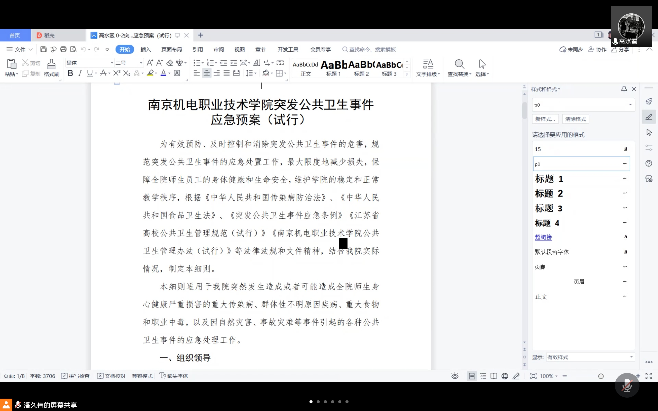 9月13日,我系组织开展学院疫情防控“两案九制”和演练方案线上学习会议,主任潘理平、书记高水冕和副主任张海红及全体教师参加了本次会议。
