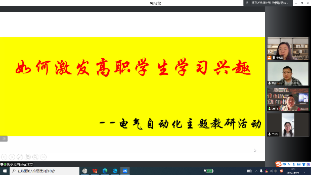 为了贯彻落实“以学生为中心”的教学理念,提高疫情期间学生线上学习的积极性,4月19日下午,电气自动化教研室线上开展了以“如何激发高职学生学习兴趣”为主题的教研活动,会议由郭夕琴老师主持。