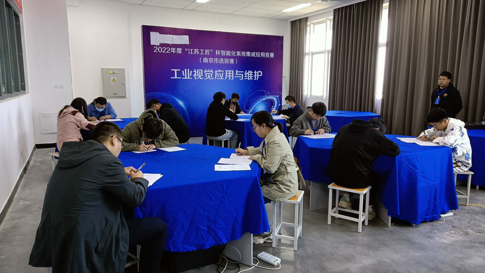 2022年度“江苏工匠”杯智能化系统集成应用竞赛(南京市选拔赛)鉴于目前南京市疫情现状,各区防控形势严峻,本次竞赛采用主会场+分会场形式,主会场为球友会在线,分会场为各参赛单位。裁判通过线上对赛场环境、竞赛流程、裁判判分、应急处理等做了周密部署,确保了本次比赛公平公正。经过为期两天的实操、理论比赛,由我院智能制造系统集成和工业视觉应用维护两个赛项的教师组和学生组四支参赛队伍以南京赛区第一名的成绩,顺利进入省赛。